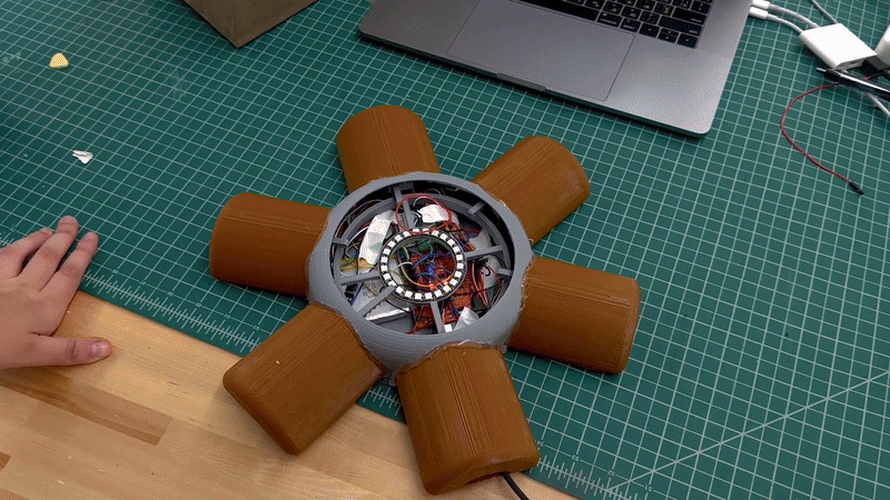 An interactive Arduino robo-arm that gently pats the user when their heart rate elevates.