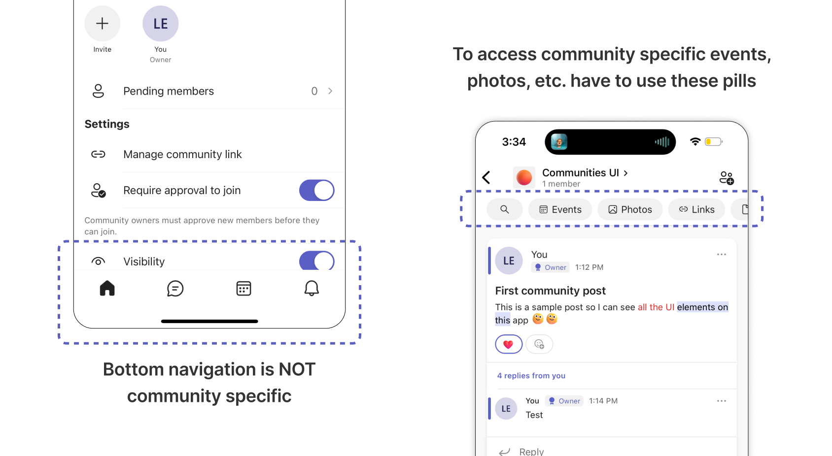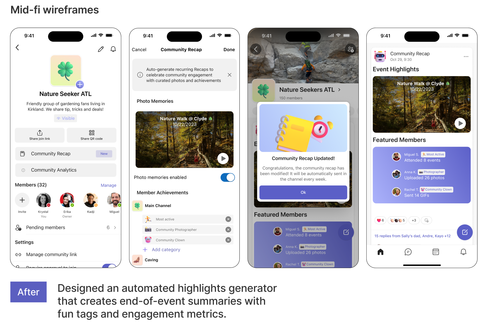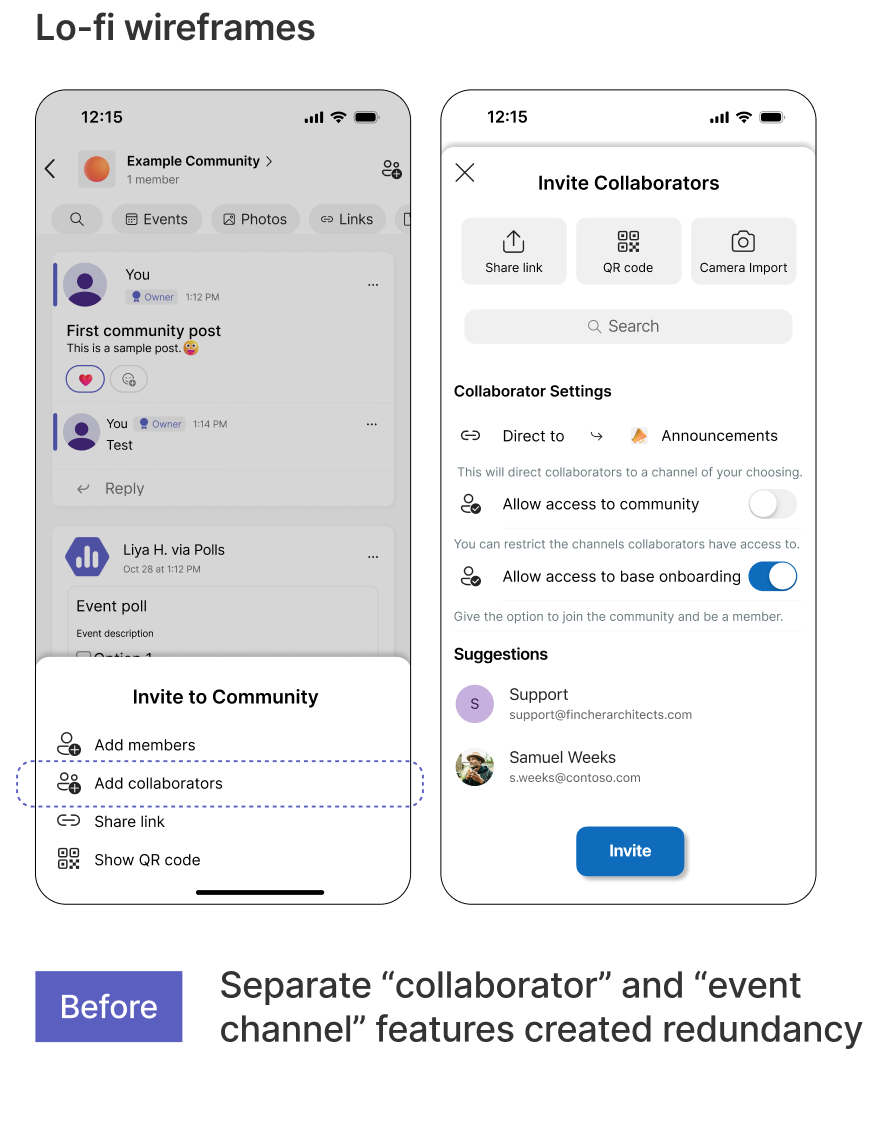 Through 2 rounds of wireframing and live testing we cut, expanded, and refined selected features. With each feature, our goal was to rework it until owners were convinced to onboard the app and use Communities as their new platform.
