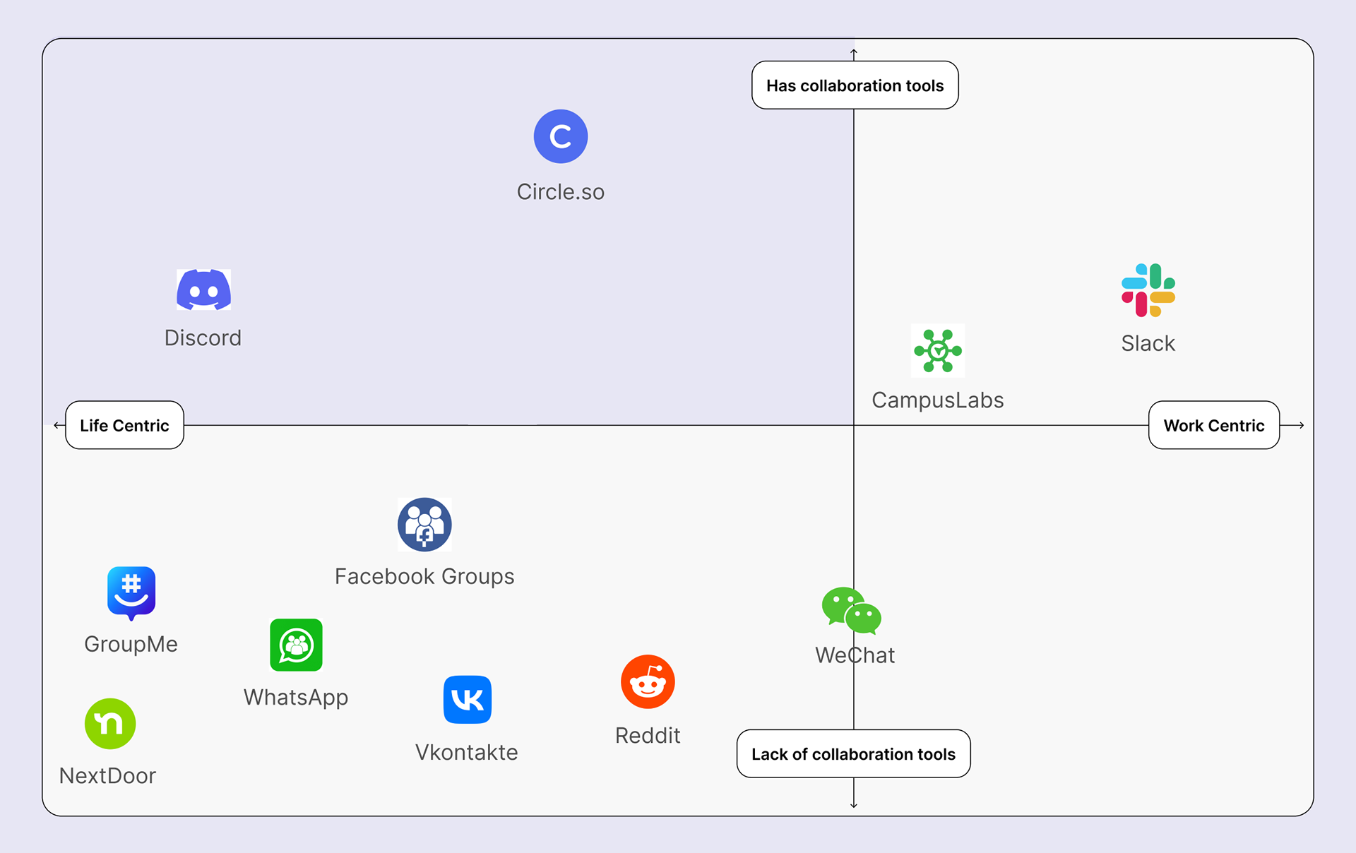All current life-centric platforms are designed for either online communities, niche audiences, or lack comprehensive collaboration tools.