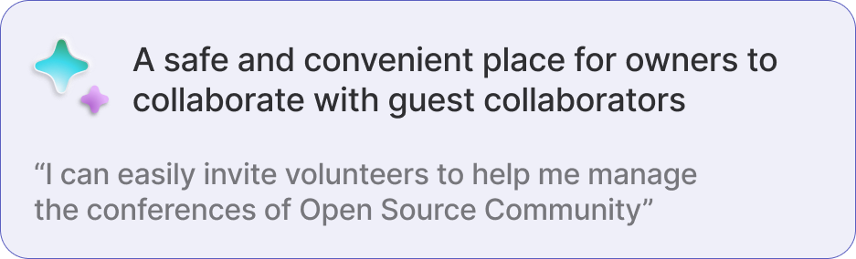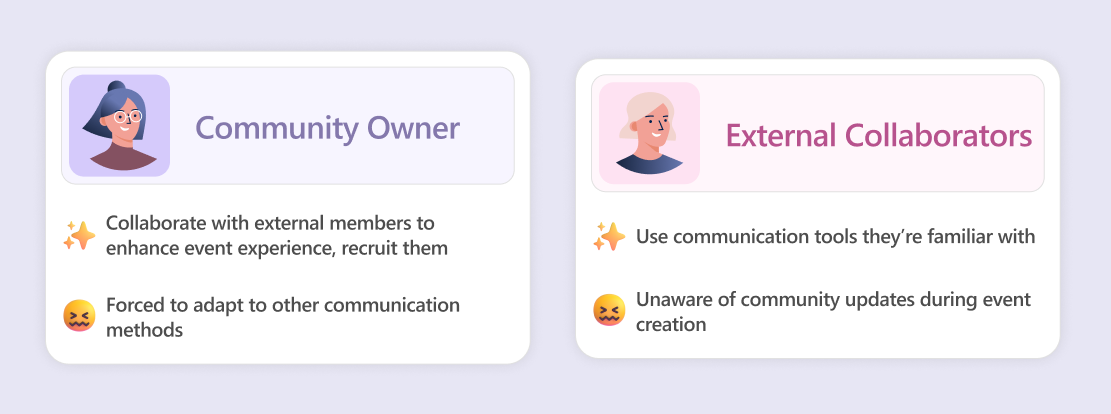 Owners almost always collaborate with external individuals to set up events and need a dedicated space to share up-to-date information while preserving community member privacy.