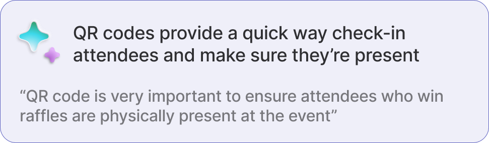 ⭢ Generate a QR code to display during the event and track attendance