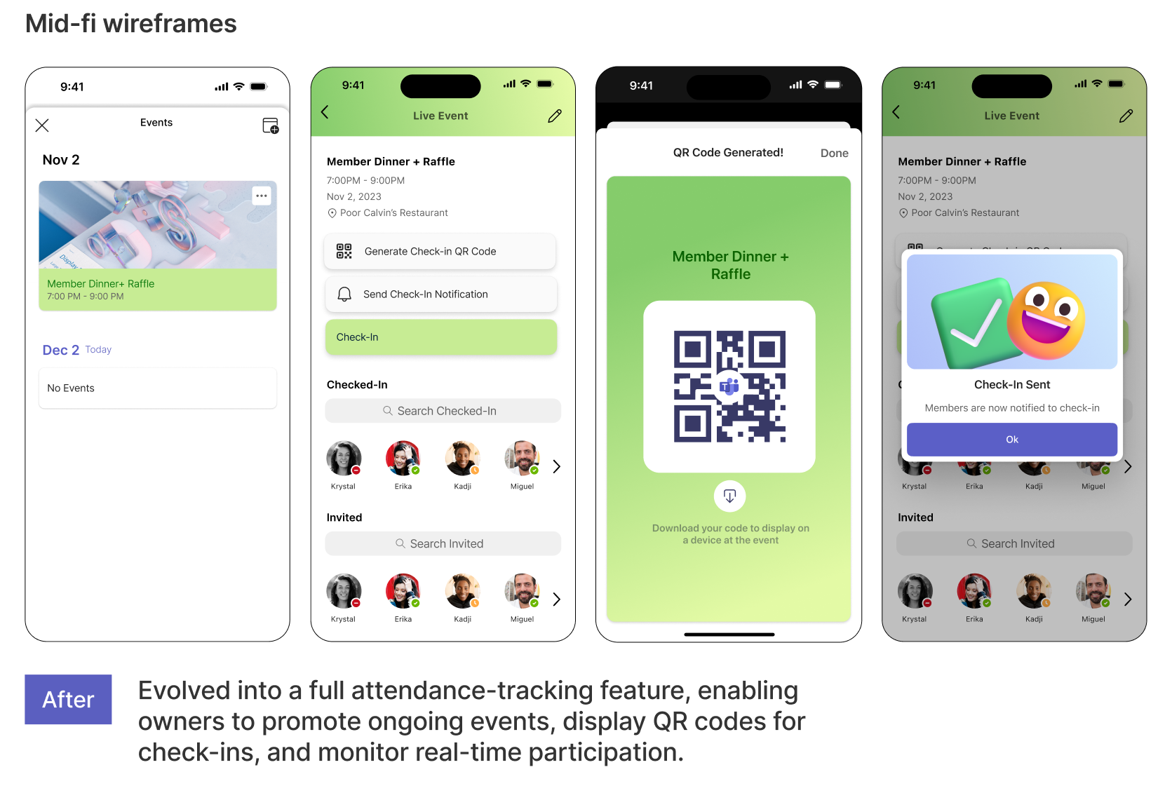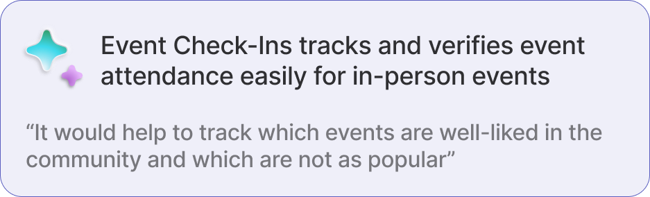 New event management features help owners streamline communication, check-in attendees via QR codes, and track event analytics to support community growth in real-world settings.