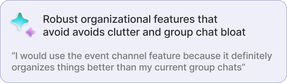 While the basic actions to create channels, chat, make events, and change settings were there, we didn't find any features that would differentiate the platform for in-person event management
